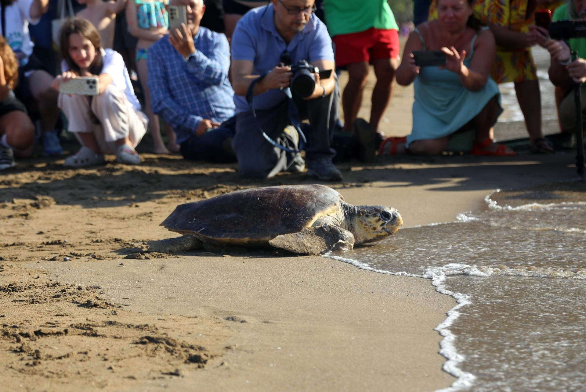 İyileşen deniz kaplumbağalarının doğal ortamına bırakılması için İztuzu Plajı'nda tören düzenlendi.