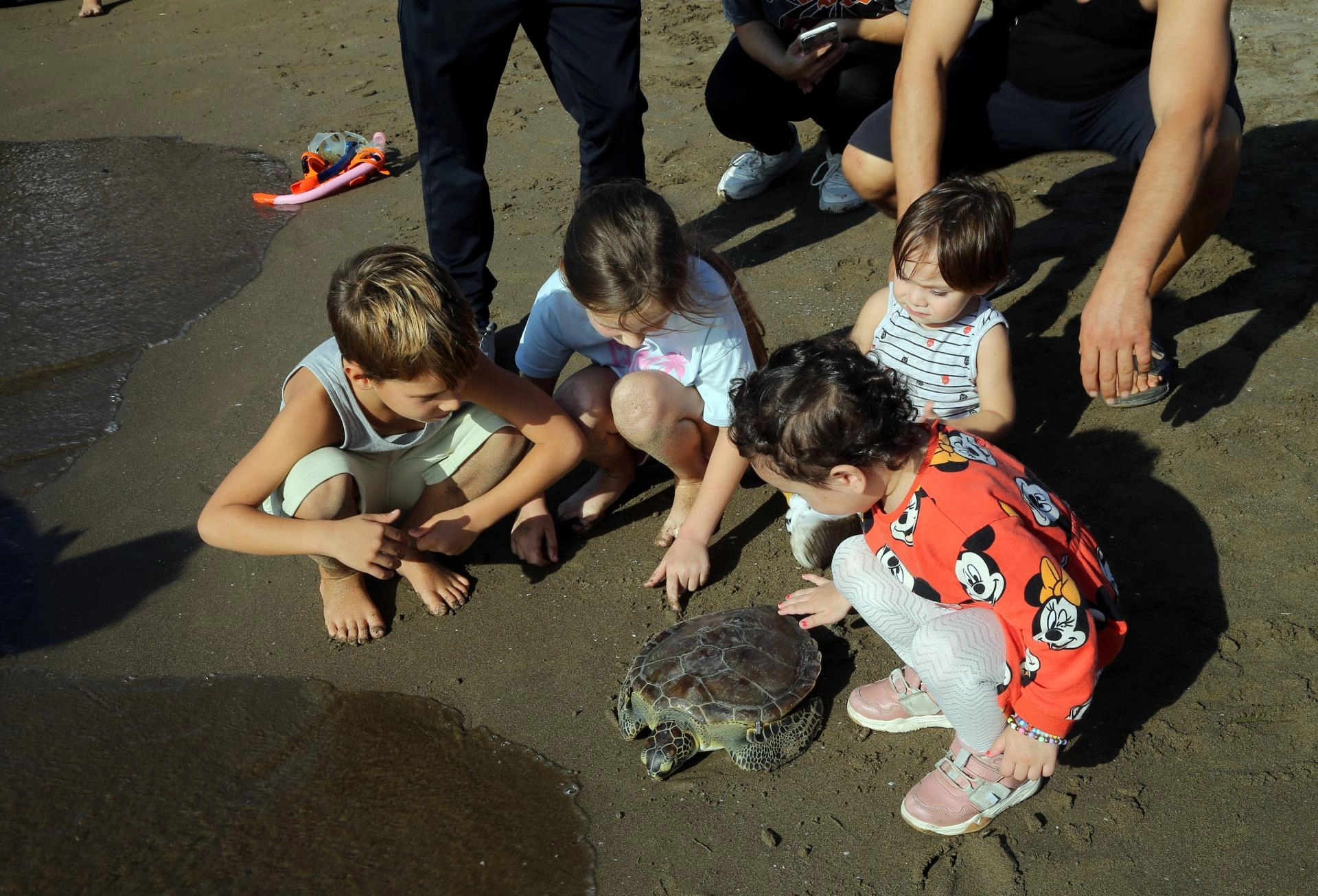 DEKAMER görevlileri tarafından plaja getirilen kaplumbağalar, protokol üyeleri ile yerli ve yabancı turistlerin katılımıyla denize salındı.