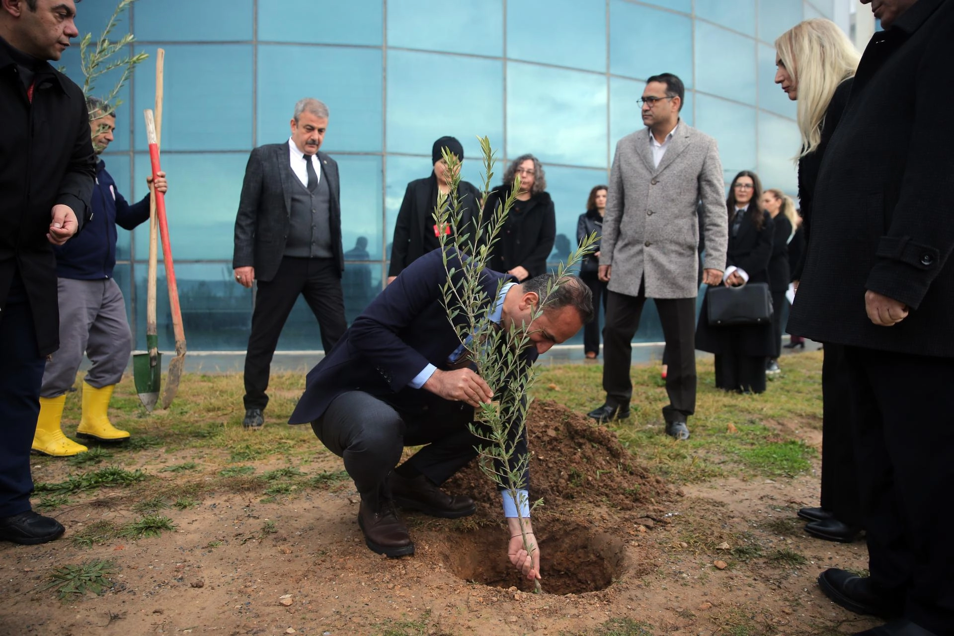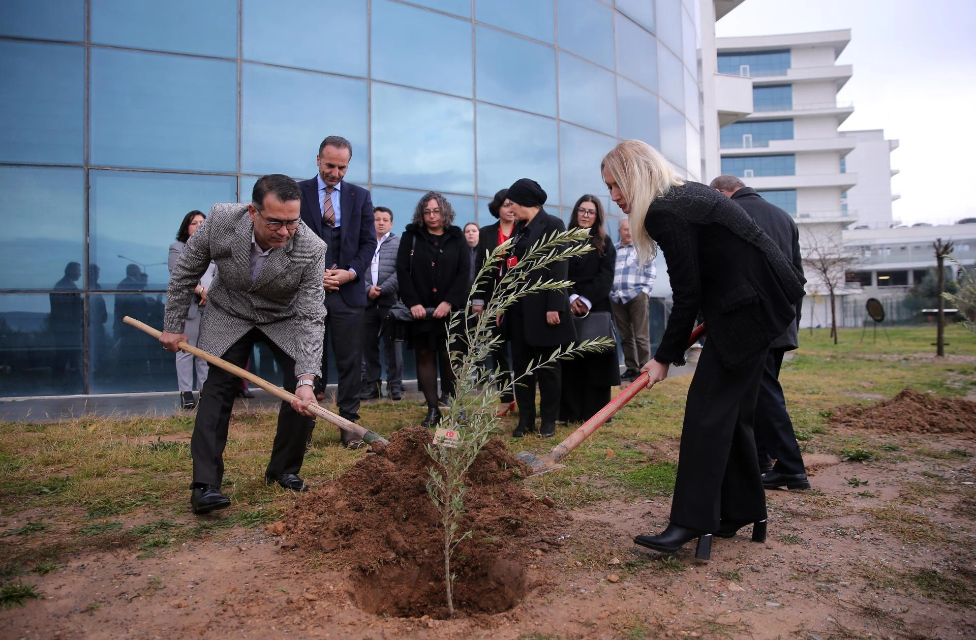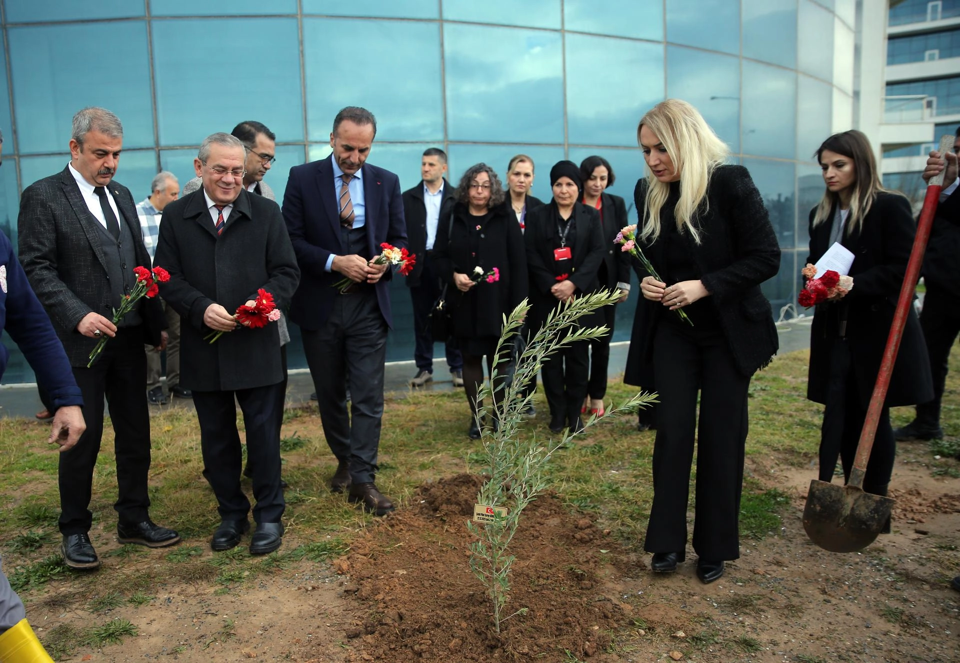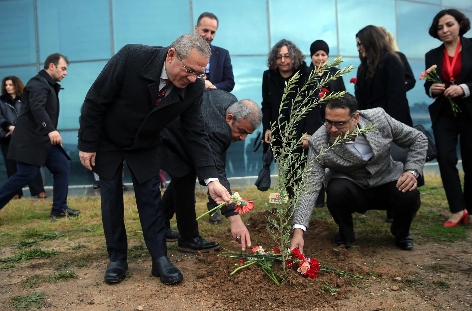 Daha sonra helikopterin düştüğü alana karanfil bırakılarak kazada hayatını kaybedenlerin isimlerinin yazılı olduğu zeytin fidanları protokol üyeleri ve sağlık çalışanlarınca dikildi.