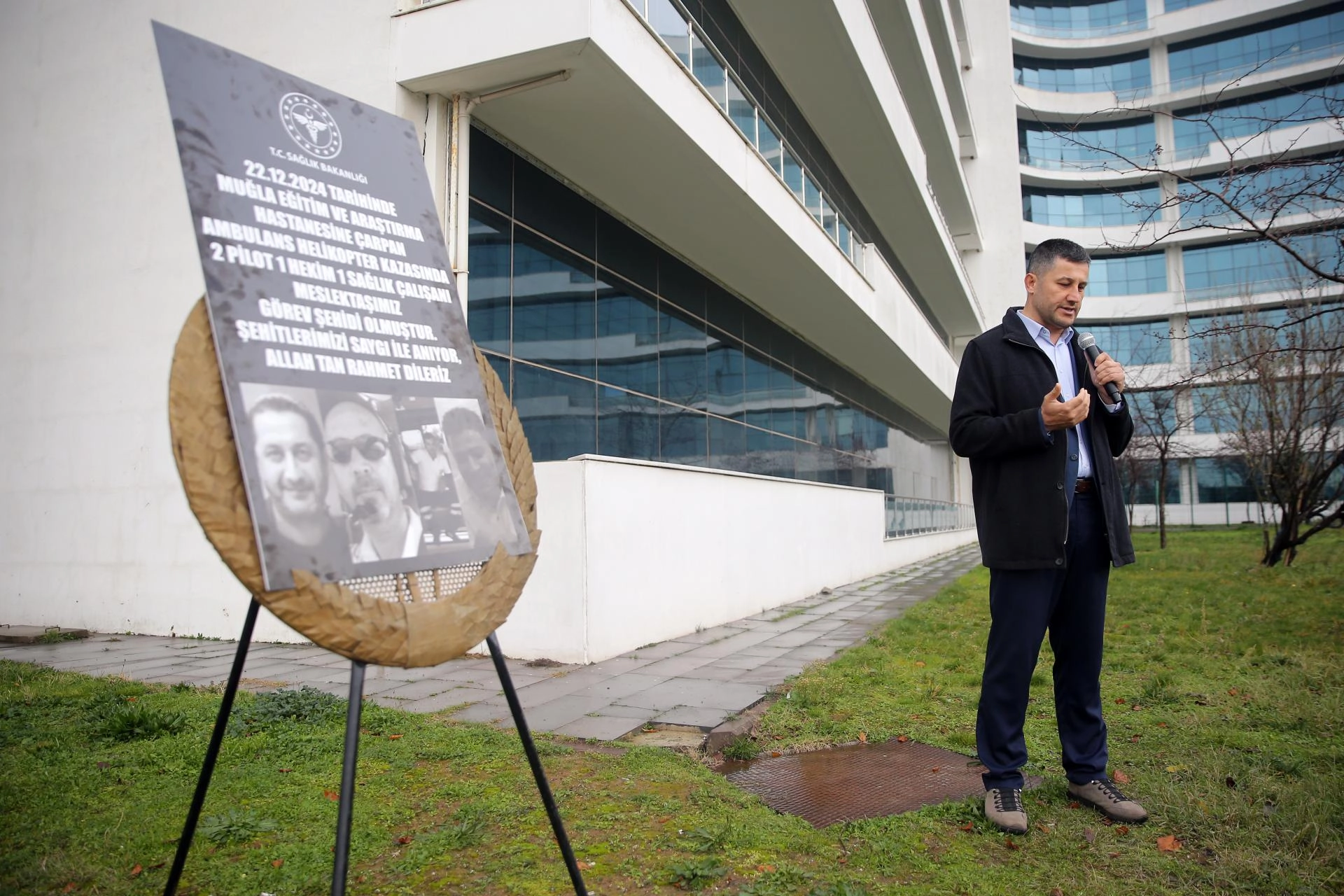 Muğla Eğitim ve Araştırma Hastanesi'nde kazanın yaşandığı yerde düzenlenen programa, Muğla Vali Yardımcısı Hüseyin Karameşe, Menteşe Kaymakamı Mehmet Eriş, Muğla İl Sağlık Müdürü Eriş Başaran Akça, Muğla Eğitim ve Araştırma Hastanesi Başhekimi Prof. Dr. Ethem Acar, sağlık çalışanları, hastane personeli ve vatandaşlar katıldı.