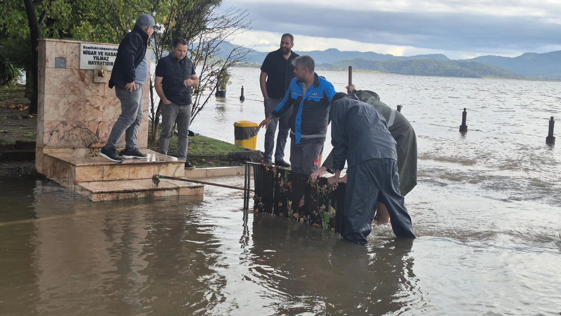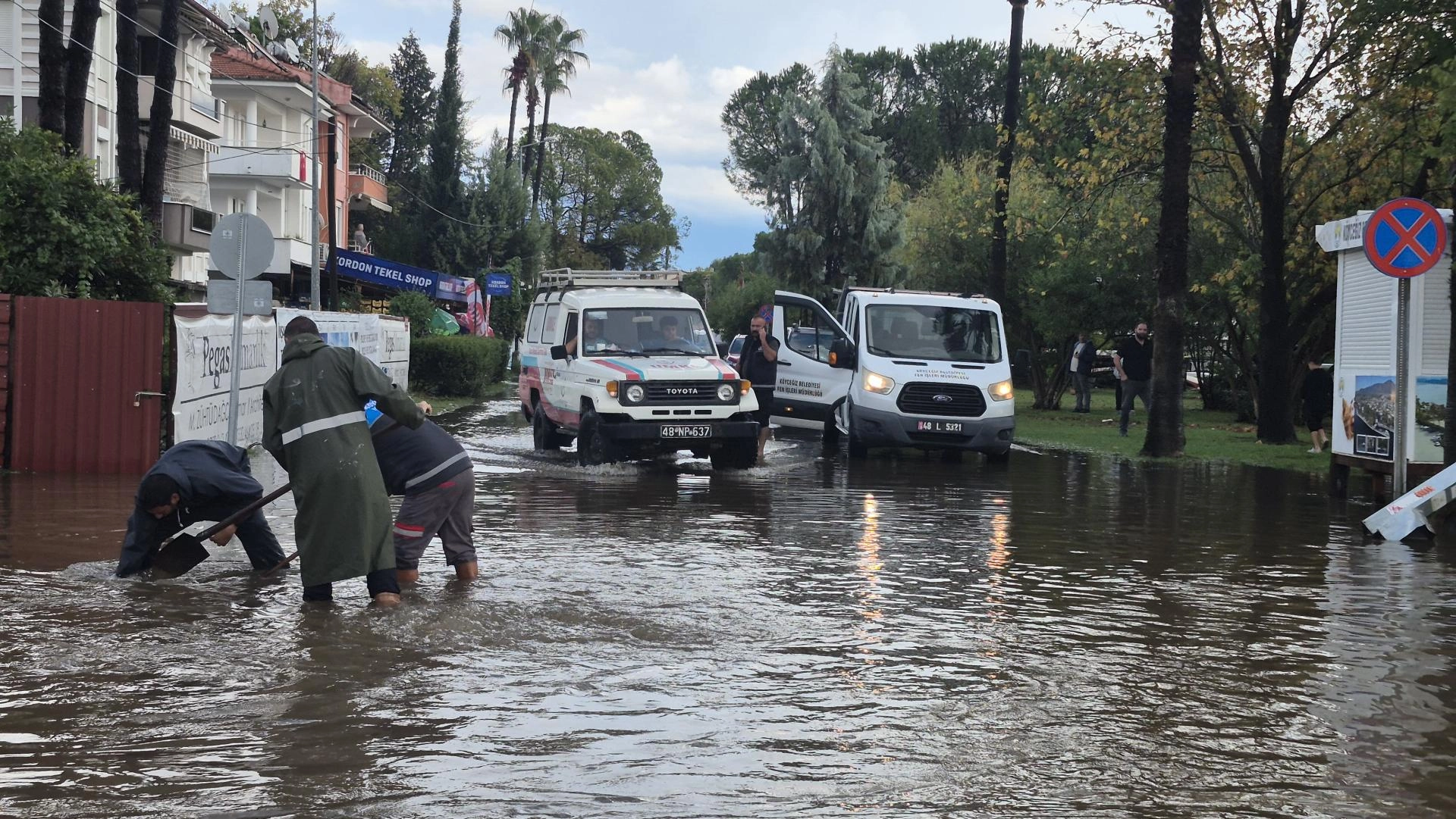 Köyceğiz ilçesinde de sağanak sonrası cadde ve sokaklar suyla kaplandı. Belediye ekipleri yollarda biriken yağmur sularının akışını sağlamak için tıkanan rögarları açmak için çaba sarf etti.