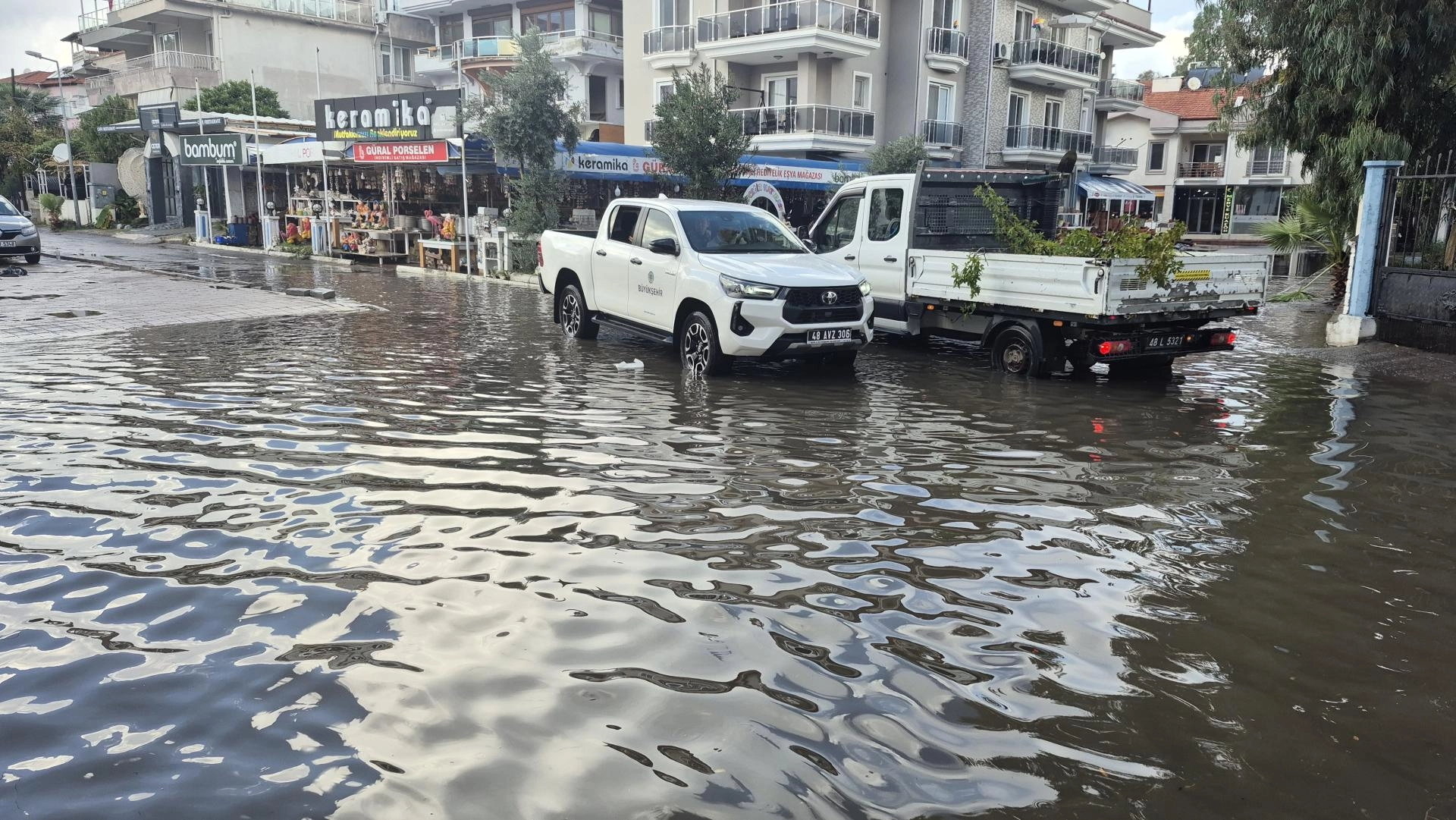Muğla'nın Fethiye ve Köyceğiz ilçelerinde meydana gelen şiddetli sağanak, hayatı olumsuz etkiledi. Özellikle Fethiye'de etkisini artıran yağış nedeniyle cadde ve sokaklar sular altında kaldı, bazı araçlar mahsur kaldı, ev ve iş yerlerini su bastı. Köyceğiz'de de benzer manzaralar yaşanırken, belediye ekipleri suyun tahliyesi için yoğun çaba sarf etti. AFAD, UMKE, Muğla İHH Köyceğiz, belediye ve güvenlik ekipleri olası olumsuzluklara karşı çalışmalarını sürdürüyor. Köyceğiz Belediyesi, hoparlörle vatandaşları zorunlu olmadıkça dışarı çıkmamaları konusunda uyardı. Yağışların devam etmesi bekleniyor.