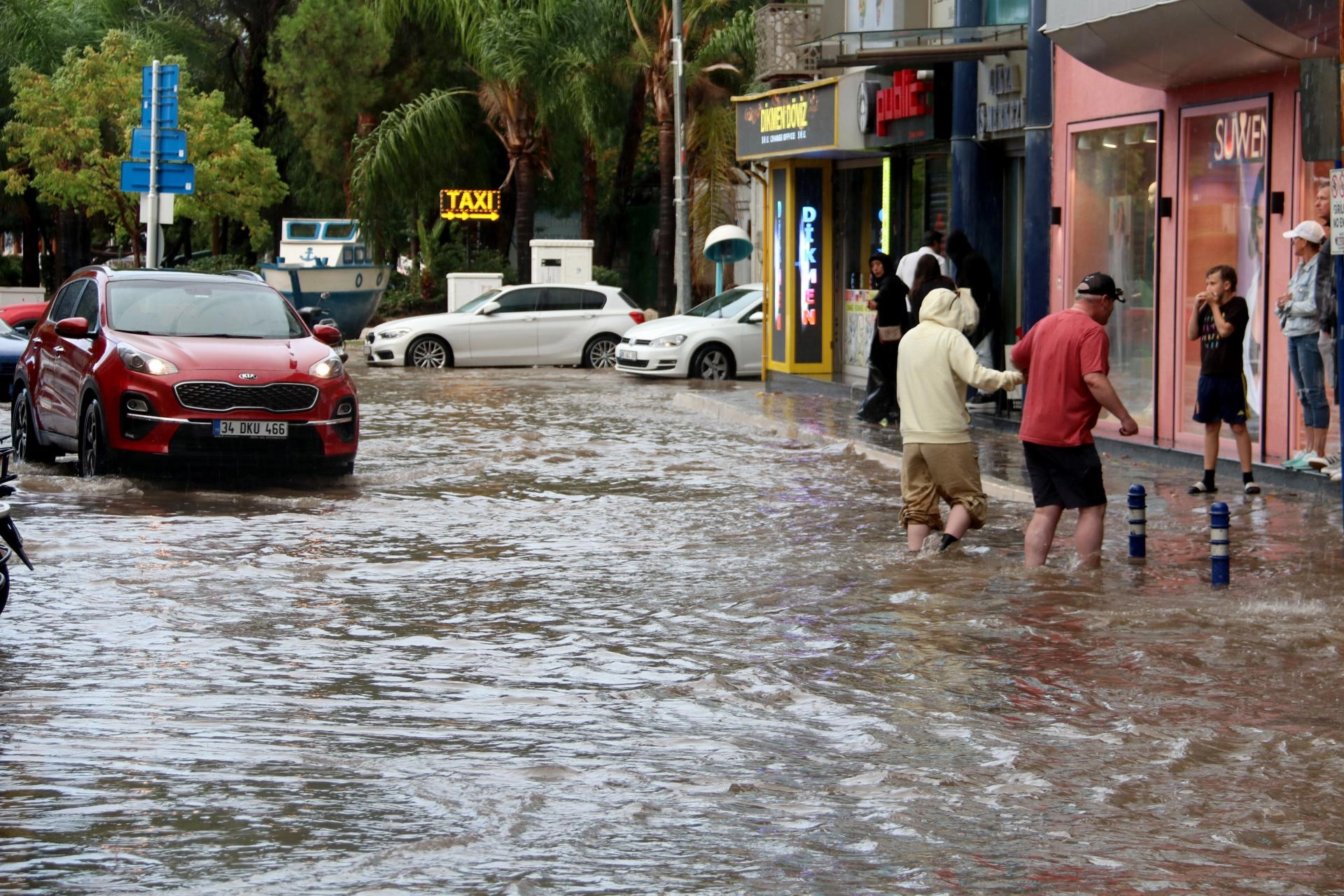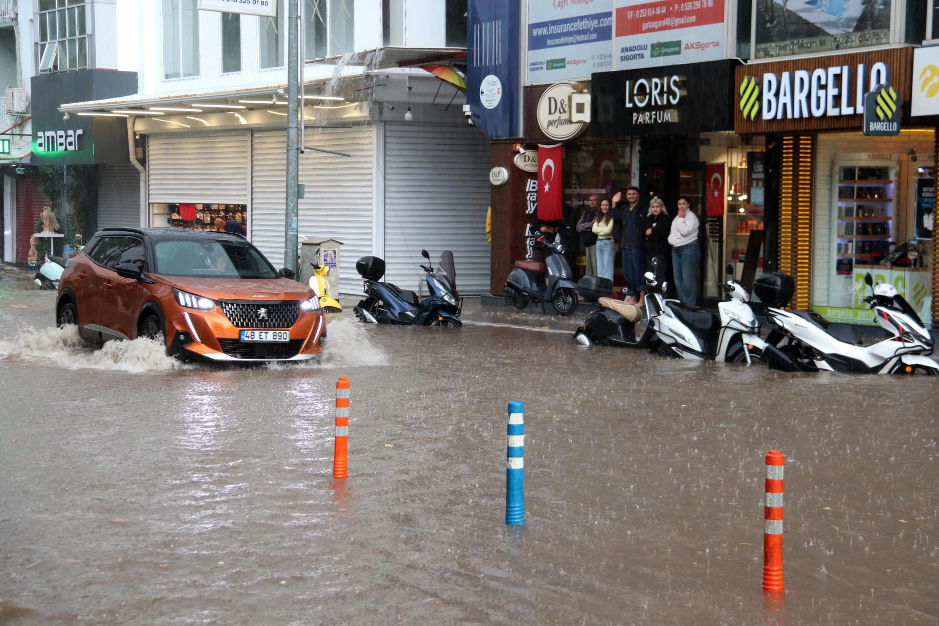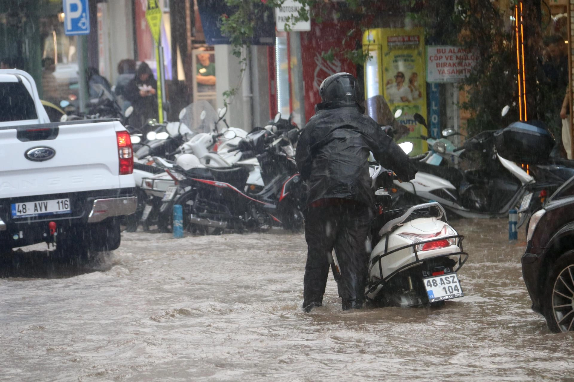 Fethiye ilçesinde sağanak, hayatı olumsuz etkiledi. Kısa sürede etkisini artıran yağış nedeniyle cadde ve sokaklar göle döndü, ulaşımda aksamalar yaşandı.