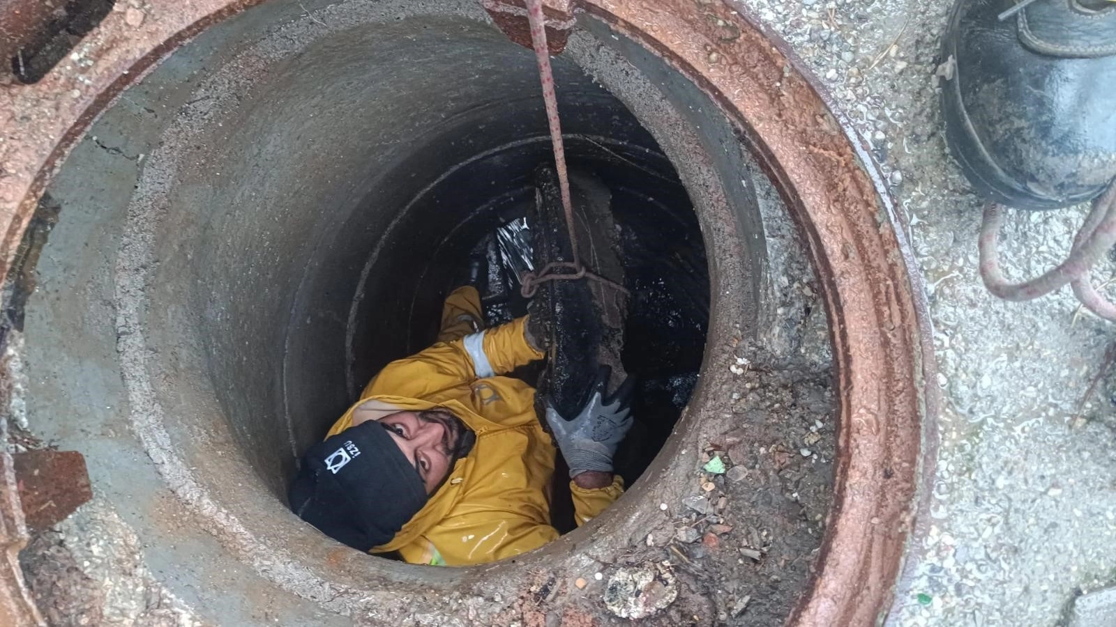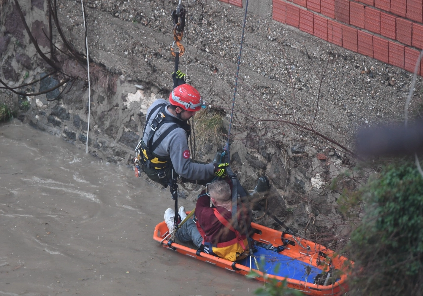 Bölgeye yönlendirilen itfaiye ekipleri, su seviyesinin yaklaşık 2 metreye ulaştığı dereye vinç yardımıyla indi.
