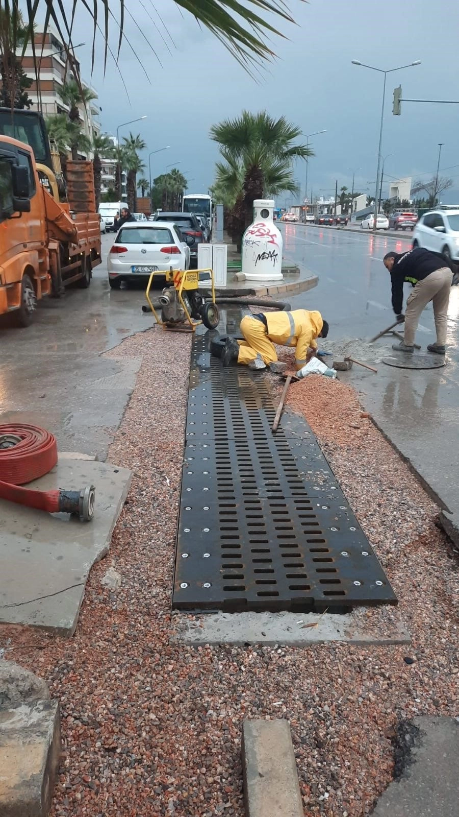 Sağanak nedeniyle Karşıyaka, Konak, Buca ve Karabağlar ilçelerinde yollarda su birikintileri oluştu, rögarlar taştı.