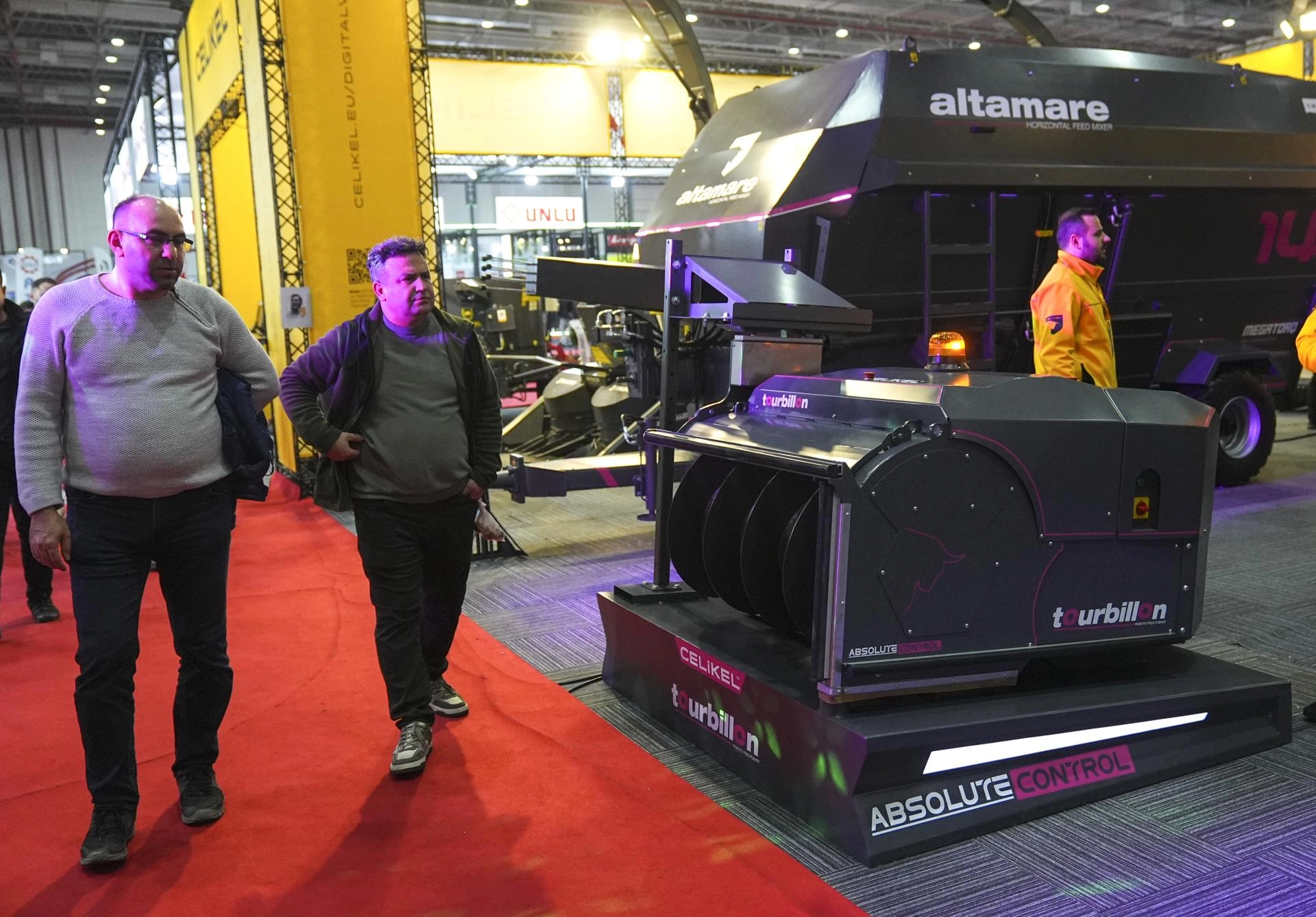 Konya'da tarım makineleri üretimi yapan bir firma, çiftliklerde iş gücü ve yem israfını azaltıp, süt ve et verimini artırması amacıyla geliştirdiği "Tourbillon" adlı yem itme robotunu ilk kez tanıttı.