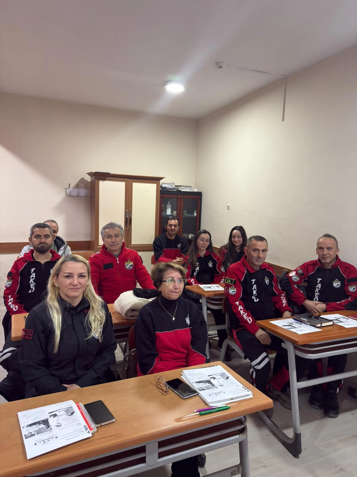 Gönüllülerden oluşan Tire Arama Kurtarma ve Eğitim Derneği (TAKED) üyeleri, yurt içinde yabancı uyruklu afetzedelere müdahalede bulunabilmek ve ihtiyaç halinde yurt dışı arama kurtarma operasyonlarında görev alabilmek amacıyla İngilizce eğitimi alıyor.