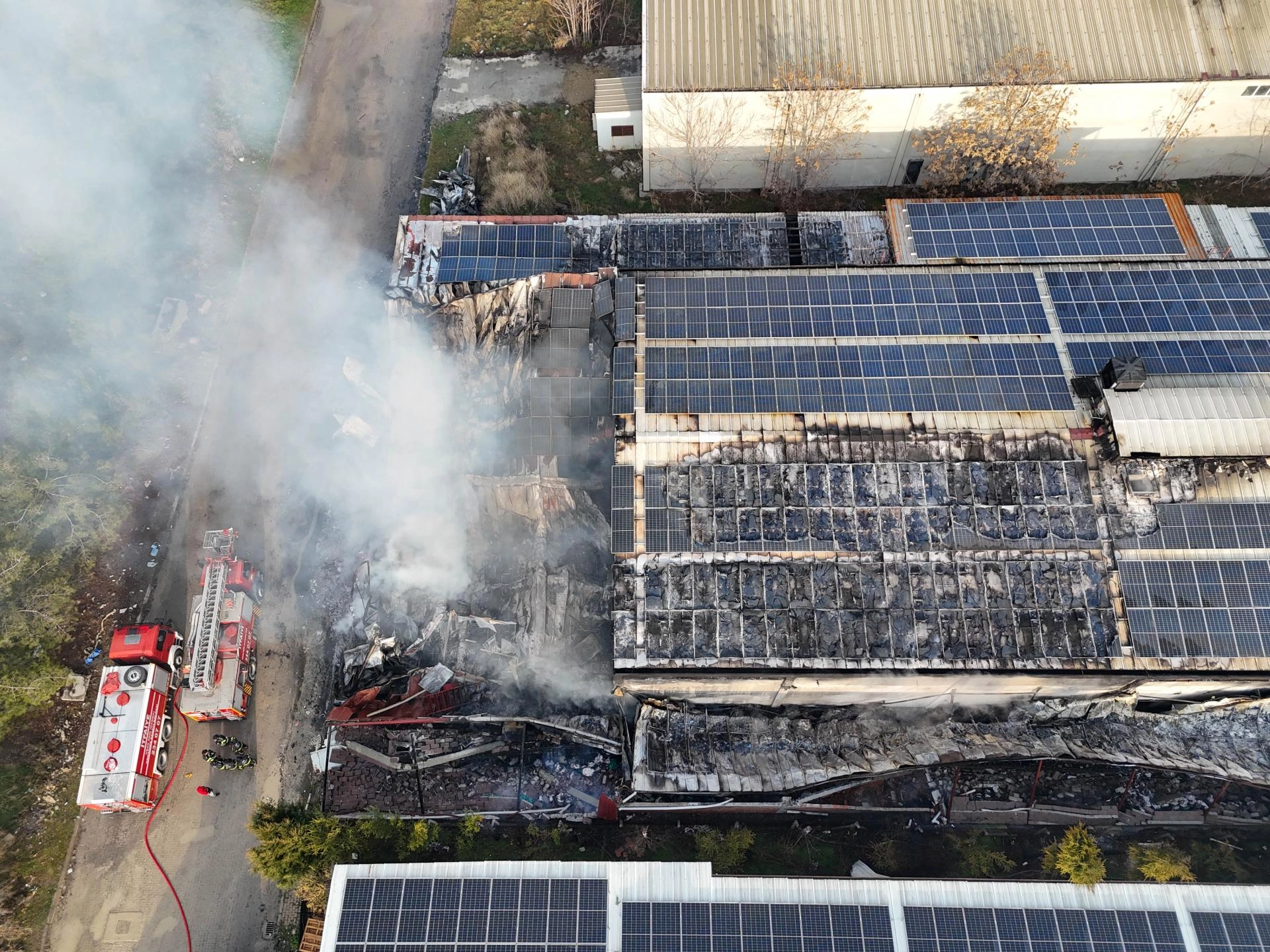 Kısa sürede büyüyen alevler, fabrikanın çatısındaki güneş panellerine sıçradı.